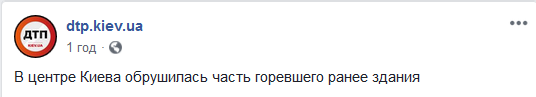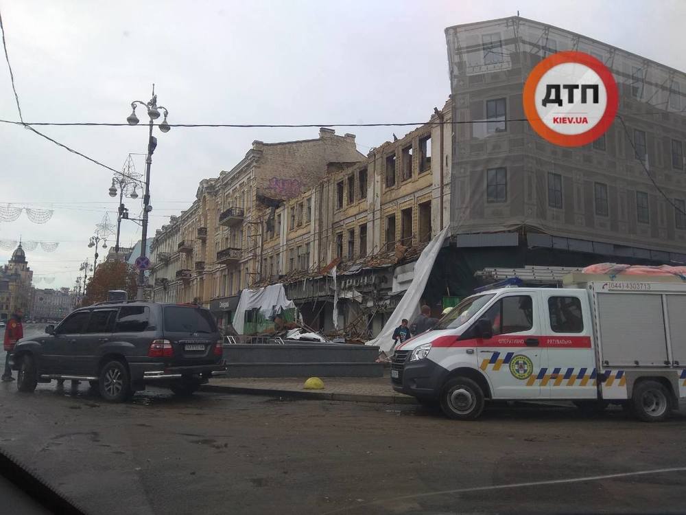 В самом центре Киева, 16 августа, произошло очередное ЧП. Здесь, на Крещатике, напротив центрального универмага, обрушилась часть горевшего ранее здания, фасад которого был скрыт защитной сеткой.