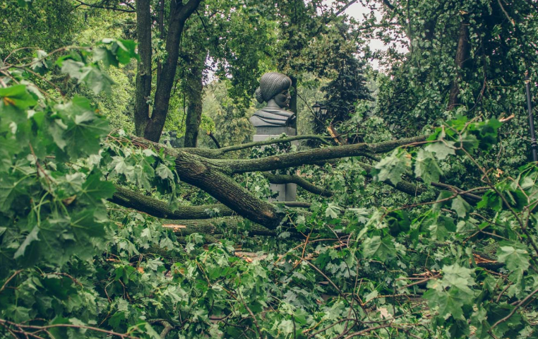 В Мариинском парке ветер повалил деревья и фонари. Аллеи усыпали ветки.