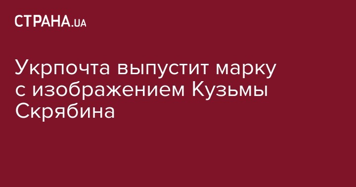 Укрпочта выпустит марку с изображением Кузьмы Скрябина