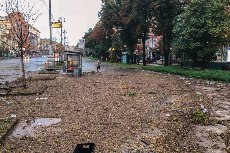 Буря в Киеве превратила Крещатик в большую и затопленную мусорную свалку. Фото