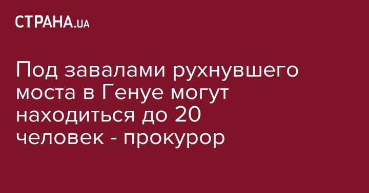 От 10 до 20 человек могут оставаться под завалами обрушившегося в итальянской Генуе автомобильного моста. Такое заявление сделал прокурор города Франческо Коцци, пишет портал Life.