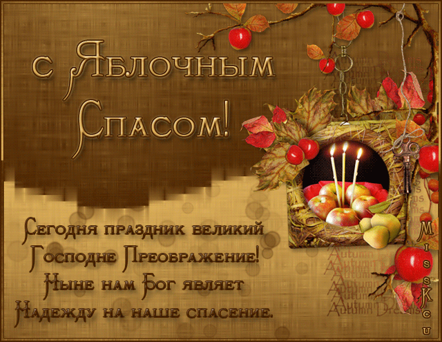 Традиционно на открытках к Преображению Господню изображают яблоки.