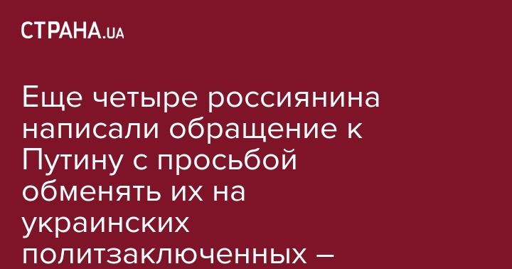 Ранее в этот день омбудсмен сообщила, что еще трое граждан РФ, которые содержатся в местах лишения свободы в Украине, написали заявления на имя президента России Владимира Путина с просьбой обменять их на удерживаемых в РФ украинских политзаключенных.