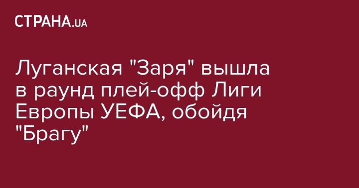 В ответном поединке 3-го квалификационного раунда турнира "Заря" на выезде сыграла в результативную ничью с португальским клубом "Брага" - 2:2 и по правилу выездного гола вышла в заключительную стадию отборочных соревнований - раунд плей-офф, сообщает Укринформ.