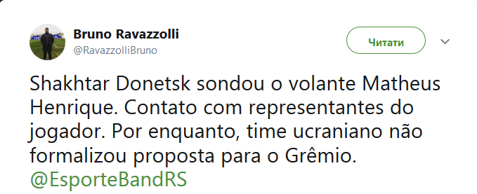 Об этом сообщает в своем Twitter бразильский журналист Bruno Ravazzolli.
