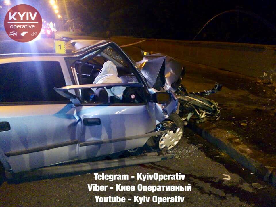 Отмечается, что авария произошла на проспекте Леся Курбаса, возле остановки "Семьи Сосниных". Таксист на Opel не справился с управлением и въехал в бетонное ограждение.