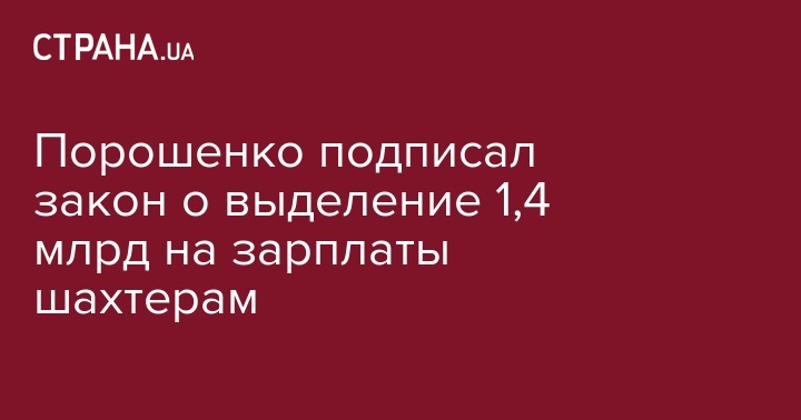 Президент Украины Петр Порошенко сегодня, 17 августа, подписал закон, которым госшахтам дополнительно выделяется 1,4 млрд грн дотаций, в том числе и для погашения задолженности по заработной плате горнякам. Об этом сообщает пресс-служба президента.