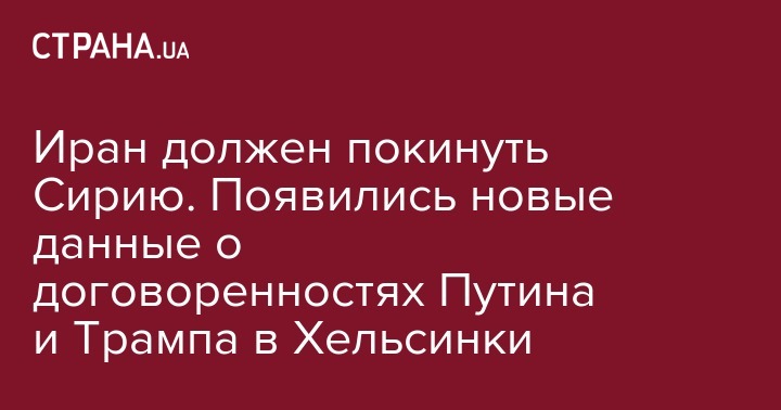 Как сообщил источник, лидеры США и России пришли к согласию по иранскому вопросу. В частности, Трамп и Путин договорились о том, что иранские военные должны покинуть Сирию. Тем не менее, российский лидер предупредил, что Иран вывести из региона будет очень трудно.