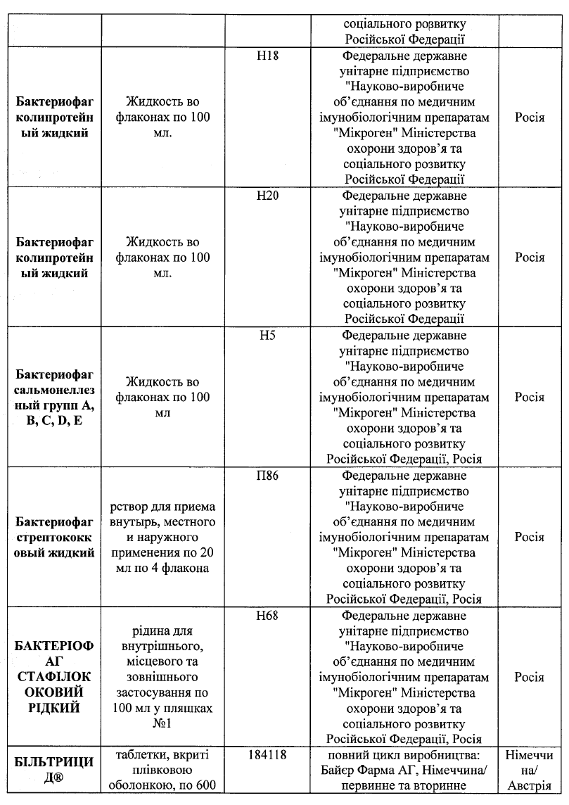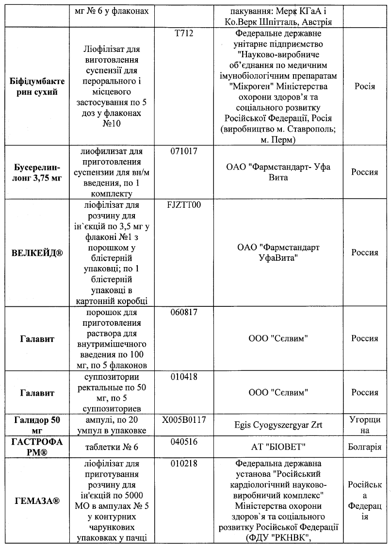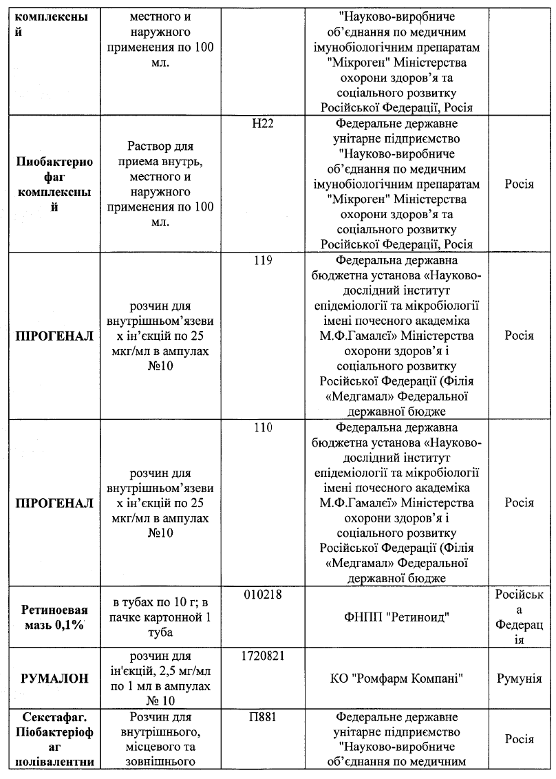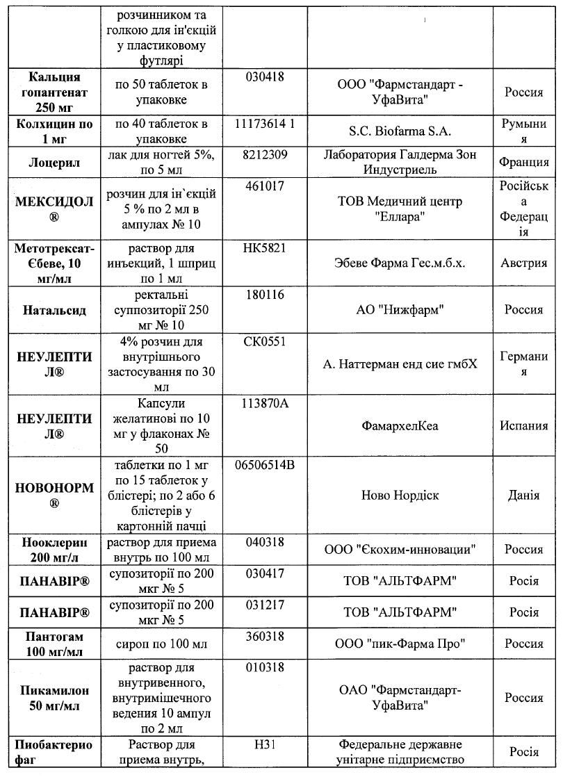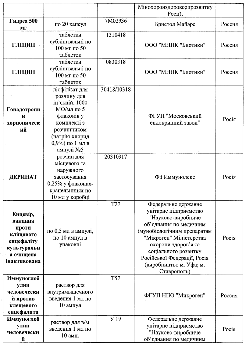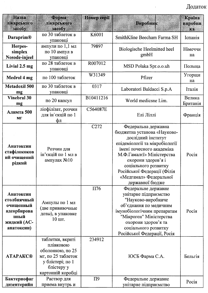 Список запрещенных лекарств насчитывает 75 наименований, 50 из которых произведены в Российской Федерации. Также в нем есть препараты украинского, немецкого, польского, венгерского, болгарского, бельгийского, французского, румынского, датского, испанского, итальянского и австрийского производства.
