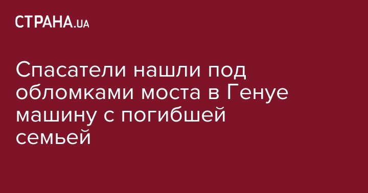 Ночью с 17 на 18 августа спасатели отыскали машину. В ней находились тела еще троих жертв обрушения моста. В транспортном средстве были мужчина, женщина и девятилетний ребенок.