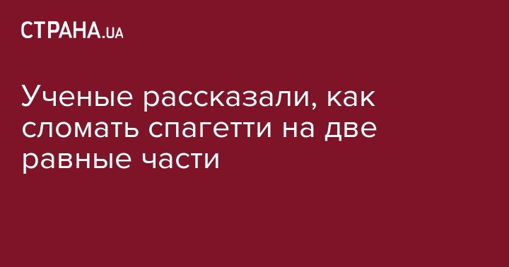 Доказала это группа ученых из США и Франции под руководством Йорна Дункеля из Массачусетского технологического университета. Они засняли процесс разлома спагетти на высокоскоростную камеру со скоростью записи от двух тысяч до одного миллиона кадров в секунду, а также использовали численное моделирование. Выяснилось, что если, сгибая макаронину, скрутить ее вокруг оси более, чем на 250 градусов, и зафиксировать в этом положении, ее внутреннее напряжение изменится. Она начнет раскручиваться быстрее, чем распрямляться, что позволяет поделить ее на две равные части.
