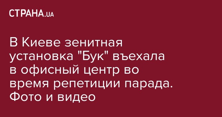 Сегодня, 18 августа, в Киеве самоходная зенитно-ракетная установка "Бук" въехала в офисный центр во время репетиции парада ко Дню Незавимости. Об этом сообщил адвокат Андрей Смирнов на своей странице в Facebook.