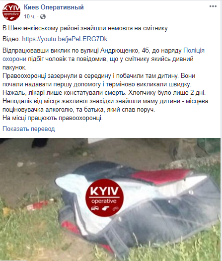 Также мы сообщали, что в Киеве на Лесном массиве в мусорнике нашли младенца.