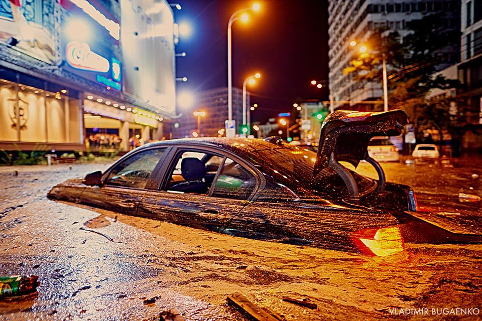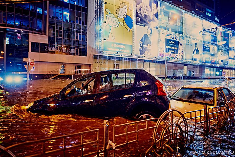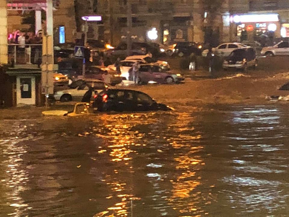 Фотограф опубликовал кадры наводнения из центра столицы около ТРЦ "Гулливер".