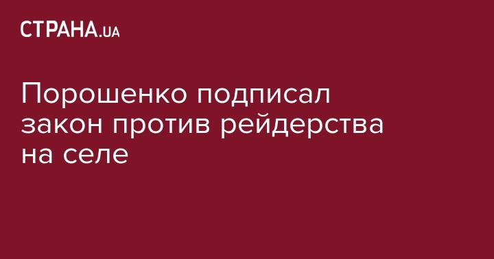 Президент Украины Петр Порошенко подписал закон "О внесении изменений в некоторые законодательные акты Украины относительно решения вопроса о коллективной собственности на землю, совершенствования правил землепользования в массивах земель сельскохозяйственного назначения, предотвращения рейдерства и стимулирования орошения в Украине".
