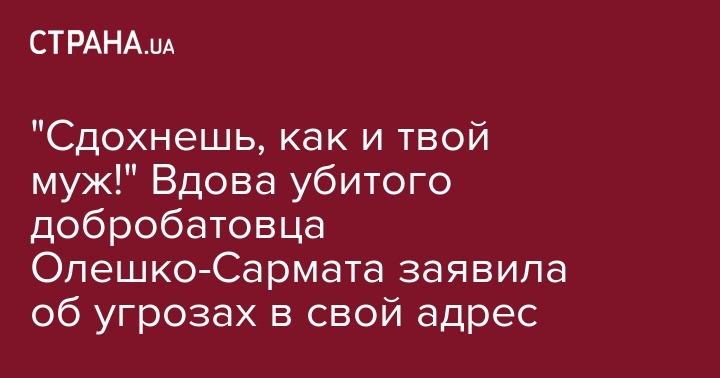 Вдова убитого добробатовца Виталия Олешко (Сармата) Татьяна Олешко заявила об угрозах в свой адрес и написала заявление в полицию. Запись с обращением вдовы разместил в Facebook Андрей Маджаров.
