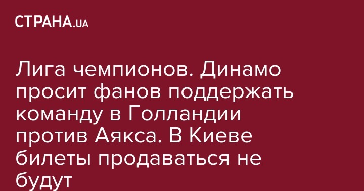 В среду, 22 августа, киевское Динамо проведет первый матч плей-офф Лиги чемпионов против Аякса. Игра пройдет в Амстердаме, и в Киеве билеты на нее продаваться не будут. Также в столице Украины невозможно и забронировать билеты на этот поединок.