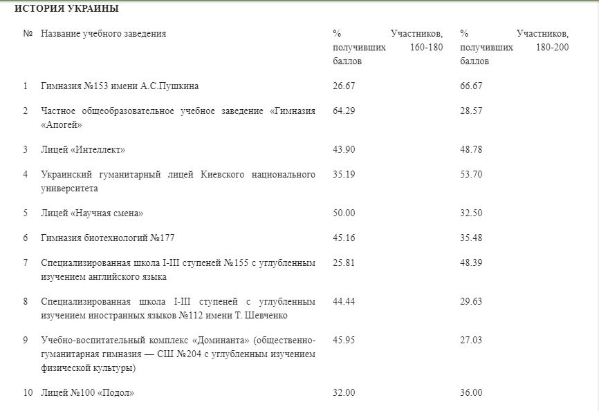 За основу были взяты результаты по самым сдаваемым предметам: украинскому языку и литературе, математике, истории, английскому языку и географии.