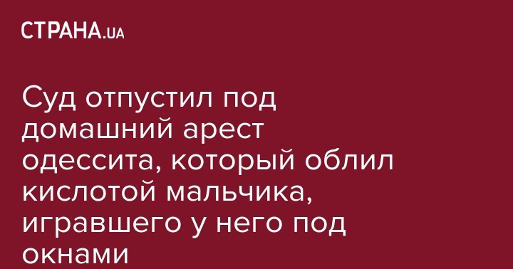 Мужчина, которого подозревают в распылении кислоты на 12-летнего мальчика, который играл под окнами в Одессе, отпущен под круглосуточный домашний арест, таков вердикт Приморского районного суда город Одессы.