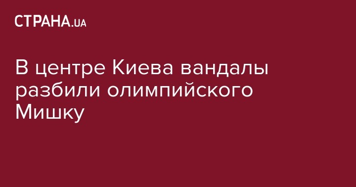 Жертвой нападения неизвестных в центре Киева стала скульптура олимпийского Мишки, которая размещалась возле гостиницы "Лыбидь" на площади Победы. Как сообщили очевидцы в соцсети, скульптуру разбили ночью в воскресенье, 29 мая, неизвестные. Об этом на своей странице в Facebook пишет пользователь Кирилл Степанец.