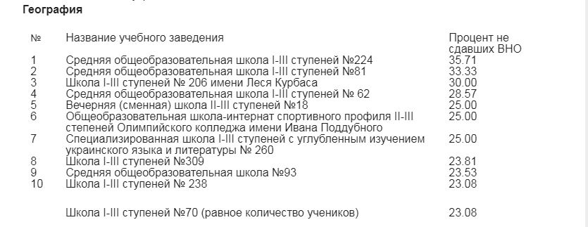 Для оценки учитывалась статистика ВНО по предметам, которые сдавали чаще всего: украинский язык и литература, математика, история Украины, английский и география.