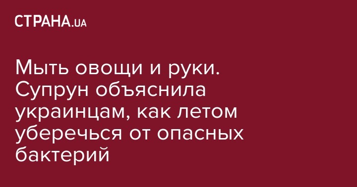 Мыть овощи и руки. Супрун объяснила украинцам, как летом уберечься от опасных бактерий