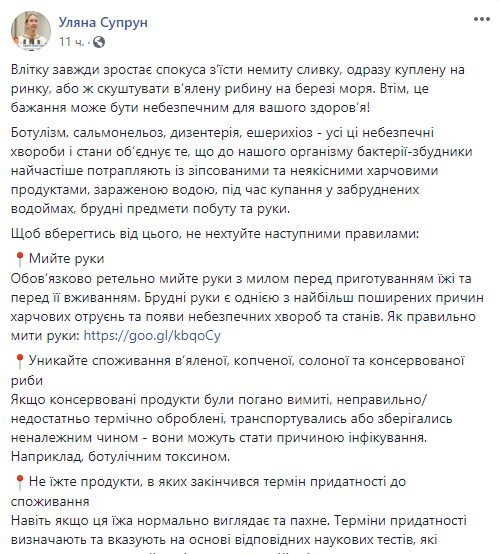 И. о. министра здравоохранения Ульяна Супрун советует, как уберечься от бактерий-возбудителей. Об этом она написала на своей странице в Facebook.