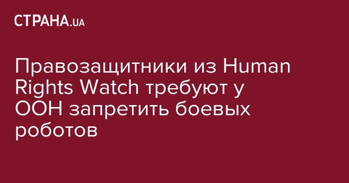 Международная правозащитная организация Human Rights Watch (HRW) и НПО "Кампания по запрету боевых роботов" (The Campaign to Stop Killer Robots) призвали ООН к переговорам о превентивном запрете автономных боевых систем.