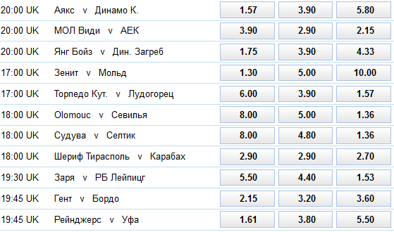 Все ставки матчей Лиги чемпионов и Лиги Европы