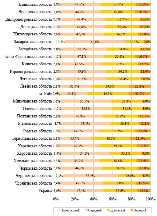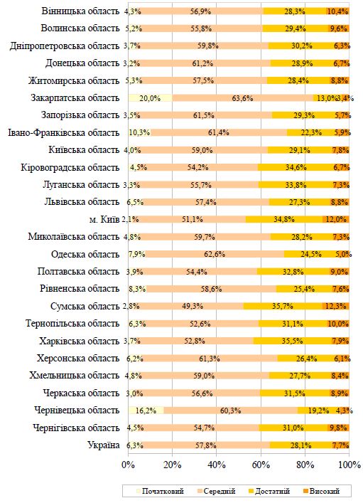 40% выпускников средних школ в Закарпатье не сдали историю Украины. По 30% – математику и физику. Т.е. даже на общем фоне явно что-то не так. Есть и другие слабенькие области.