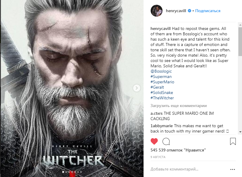 Это Зак МакГоуэен, который играл капитана Чарльза Вейна в "Черных парусах". И Генри Кавилл, который был "Супермэном" в ряде последних фильмов. На его странице в Instagram даже появилось шуточное фото, где его показали в образе ведьмака.