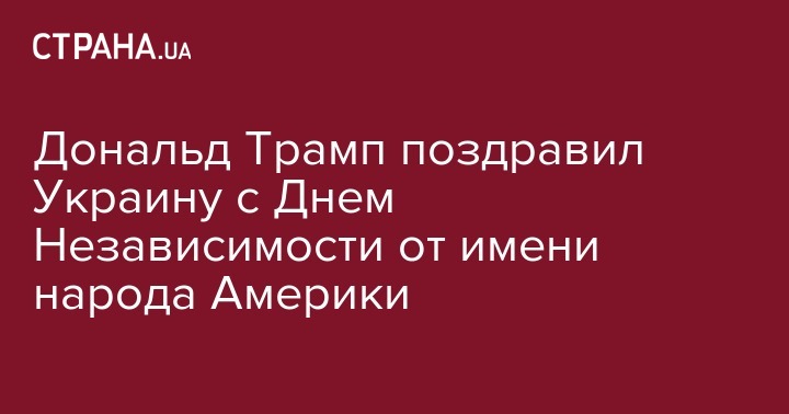 Американский президент Дональд Трамп поздравил Украину с национальным праздником Днем Независимости. По этому случаю он направил поздравление в адрес президента Петра Порошенко, передает официальный сайт главы государства.