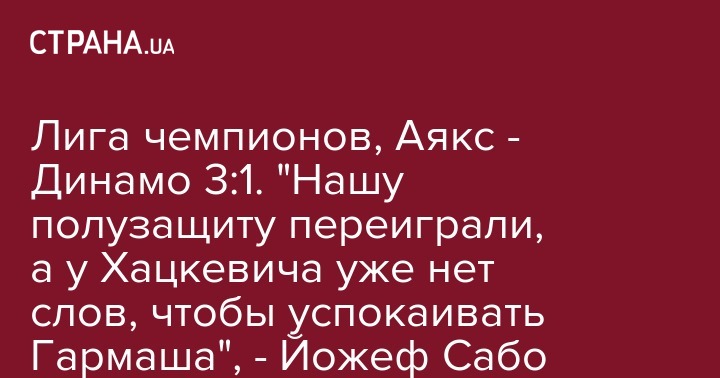 Известный тренер и эксперт Йожеф Сабо разделил эту оценку коуча "бело-синих" и поделился своими впечатлениями от матча Аякс - Динамо, передает Футбол 1.