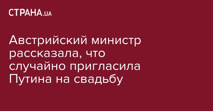 Глава МИД Австрии Карин Кнайсль, которая вышла замуж за бизнесмена Вольфганга Мейлингера 18 августа,  рассказала о том, что спонтанно пригласила президента РФ Владимира Путина на собственную свадьбу. Об этом сообщает издание Kurier.