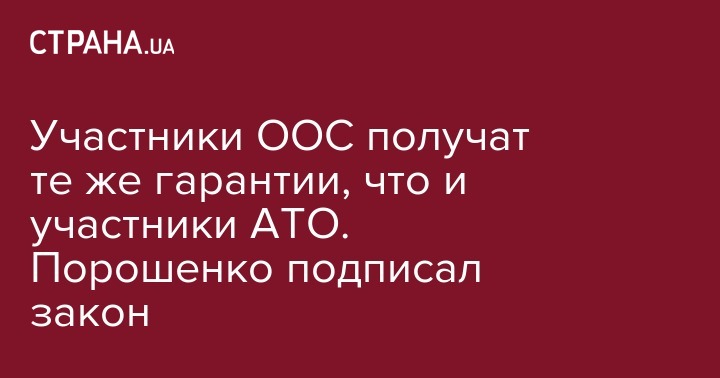 Благодаря закону участники ООС получат те же самые государственные гарантии, которые предусмотрены для участников АТО, ветеранов и участников боевых действий. Речь о пенсионном обеспечении, гуманитарной помощи, образовании, лечении и прочем.