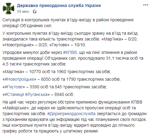Об этом утром сообщили в пресс-центре Госпогранслужбы Украины.