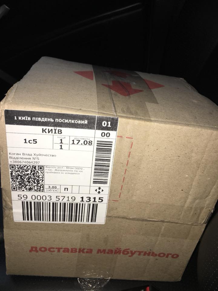 Об этом сам Влад Коган рассказал в Facebook. Посылка с данными получателя на имя "Коган Влад Ху*отчество" была отправлена из Кривого Рога.