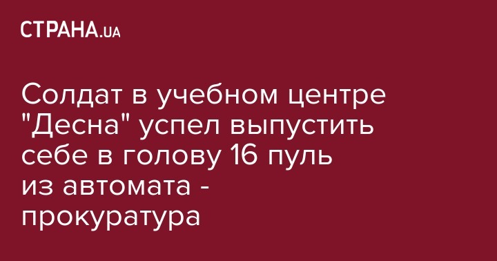 Солдат срочной службы, которого 7 августа нашли мертвым на посту в Учебном центре "Десна", выпустил себе в голову из автомата 16 пуль. Об этом сообщила пресс-служба военной прокуратуры Центрального региона Украины.