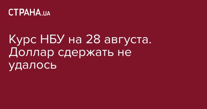 Национальный банк Украины установил курс основных валют по отношению к гривне на вторник, 28 августа. Об этом сообщается на сайте регулятора.