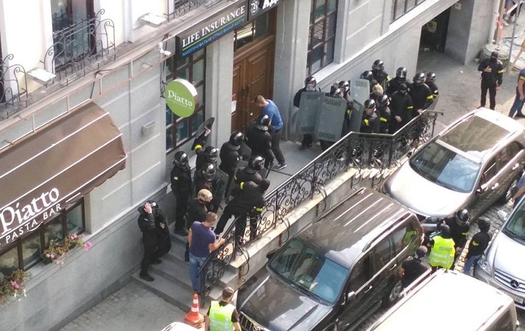 В тоже время, в группе "Наш Киев" в Facebook добавляют, что ЧП произошло в офисе адвокатской конторы, была стрельба и рейдерский захват. "Группа молодых людей была одета в черную форму, шлемы, в руках у них были щиты. Один из них стал вскрывать двери болгаркой, после чего они проникли в здание. Затем молодые люди выкидывать на улицу охранников, - сообщает издание.