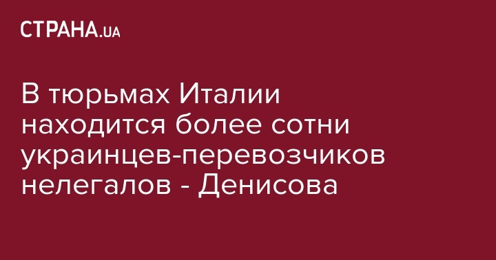 В тюрьмах Италии находится 108 украинцев, задержанных за нелегальную перевозку мигрантов, но есть и несколько потерпевших от торговли людьми, и сейчас МИД Украины работает над их освобождением. Об этом сообщила уполномоченный Верховной Рады по правам человека Людмила Денисова на своей странице в Facebook.