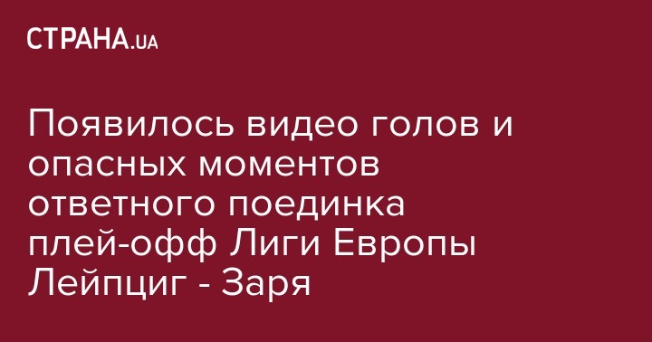 Появилось видео голов и опасных моментов ответного поединка плей-офф Лиги Европы Лейпциг - Заря