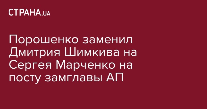 Президент Украины Петр Порошенко сменил Дмитрия Шимкива на должности заместителя главы Администрации президента Украины. На его пост назначен Сергей Марченко.