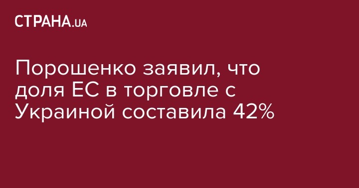 Порошенко заявил, что доля ЕС в торговле с Украиной составила 42%