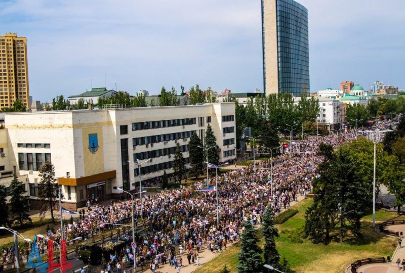 Двухсоттысячная колонна людей, следовавших за гробом, прошла от столичного театра оперы и балета до здания администрации главы т.н. "ДНР" на улице Артема.