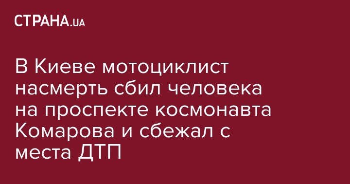 В Киеве на проспекте космонавта Комарова в Соломенском районе неизвестный мотоциклист на мотоцикле марки Ducatti без документов сбил насмерть пешехода. Об этом сообщает "Киев Оперативный" на своем Telegram-канале.