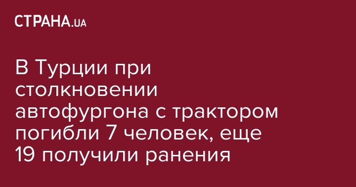 В Турции при столкновении автофургона с трактором погибли 7 человек, еще 19 получили ранения