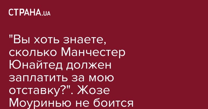 "Вы хоть знаете, сколько Манчестер Юнайтед должен заплатить за мою отставку?". Жозе Моуринью не боится увольнения
