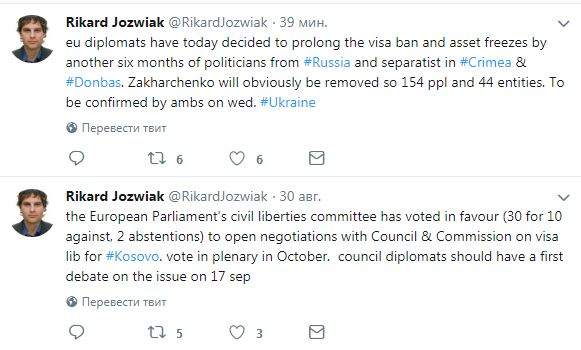 По его словам, всего в списке 154 человека и 44 субъекта предпринимательской деятельности. Сегодня дипломаты ЕС решили продлить срок действия визового запрета и заморозить активы еще на шесть месяцев против политиков из России и сепаратистов в Крыму и на Донбассе. Очевидно, Захарченко будет удален (из санкционного списка, - Прим. Ред.)", - написал Йозвяк.