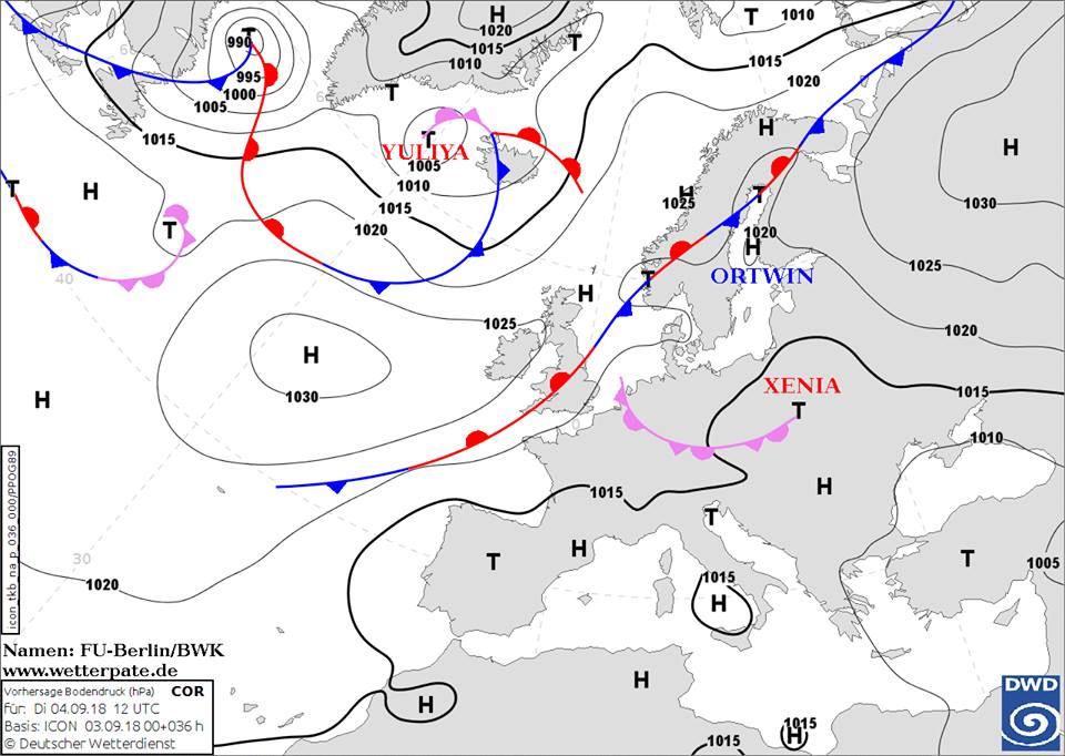 Погоду в Украине будет обеспечивать антициклон с востока. Карта атмосферных фронтов